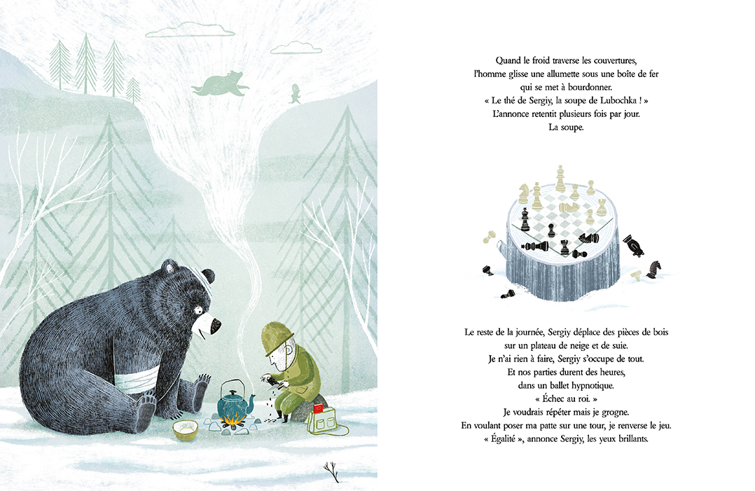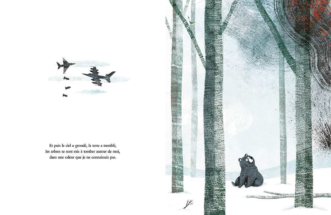 Un ours mène une vie d’ours au fil des saisons. Et puis un jour, la terre tremble, le ciel prend feu... La guerre est arrivée jusqu’à lui. Tous les animaux fuient, et l’ours tombe, blessé. Il est sauvé et soigné par Sergiy, soldat en permission, qui lui donne un nom : Lubochka. Pendant plusieurs jours, Lubochka et l’homme vivent une parenthèse de douceur, entre soupes chaudes, parties d’échecs, musique sous les étoiles. Mais Sergiy est soucieux : bientôt, il devra repartir au front. Alors, une nuit, profitant du sommeil de son bienfaiteur, Lubochka s’empare de son arme et enfile son uniforme, pour prendre sa place au combat.